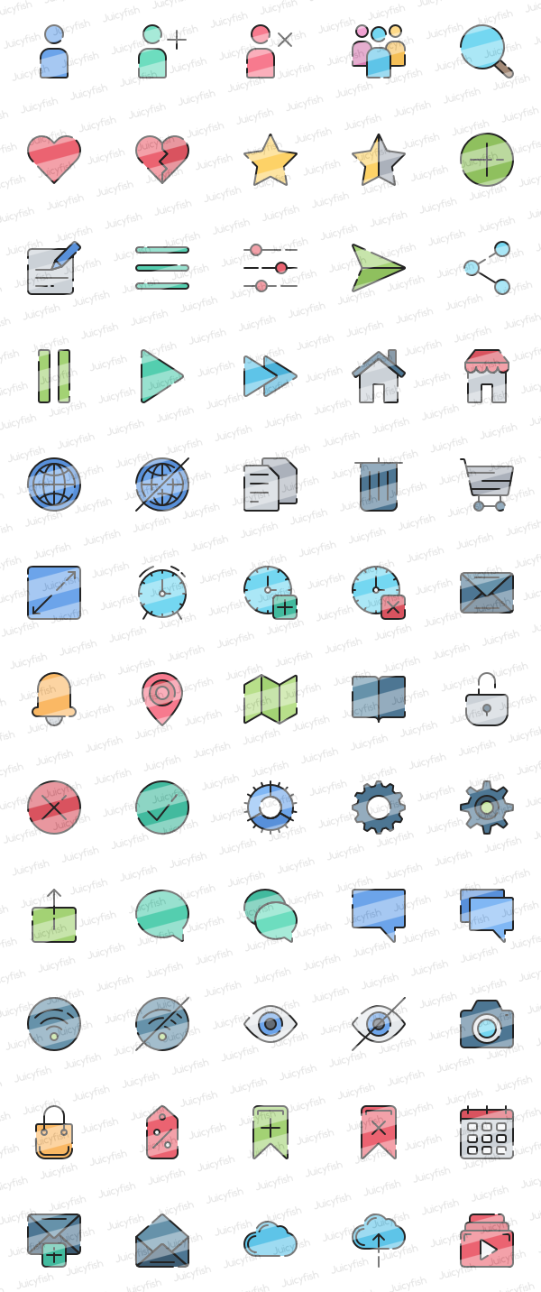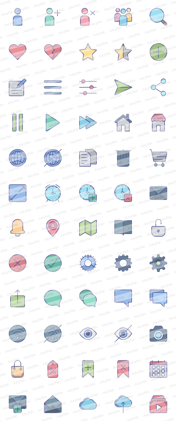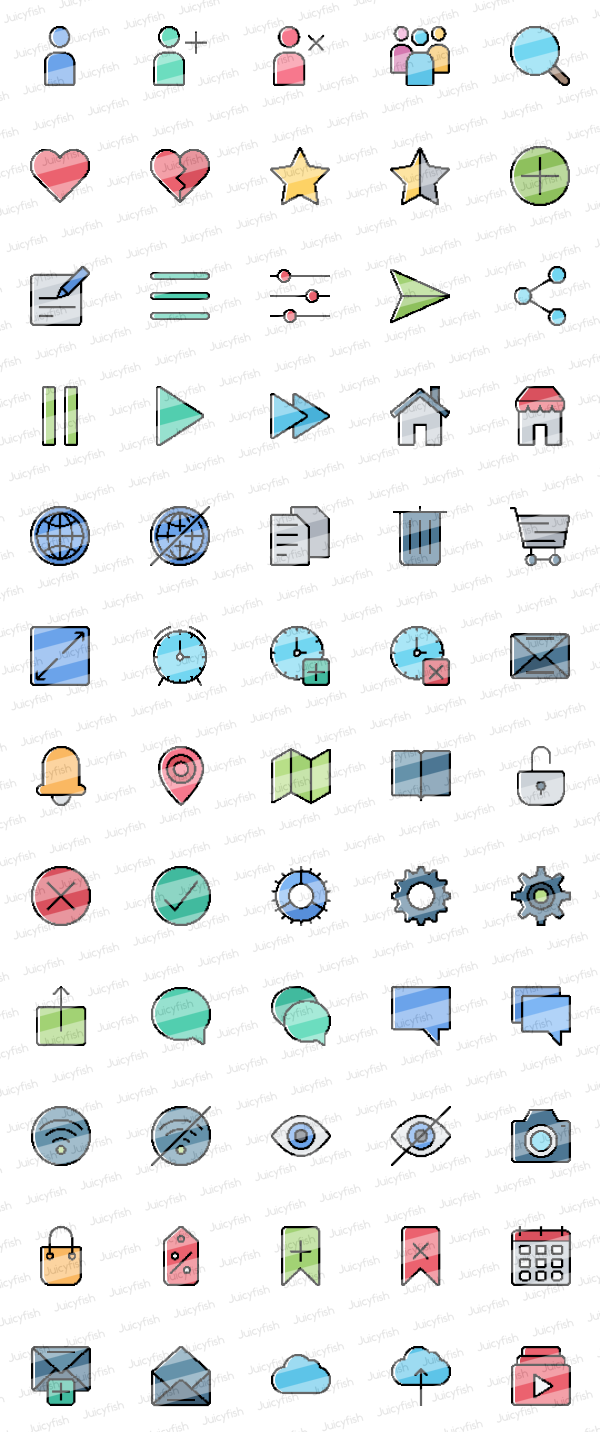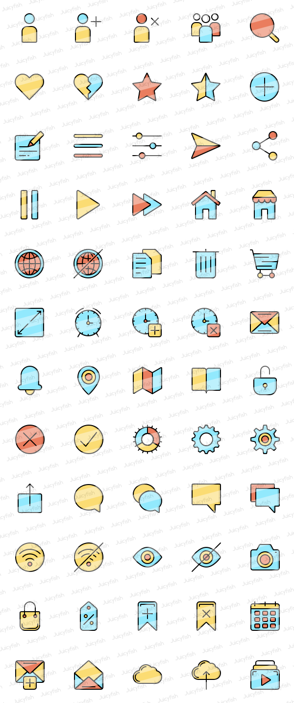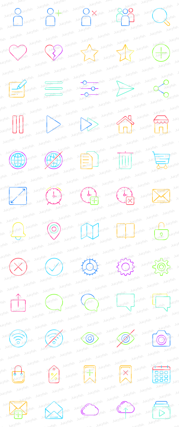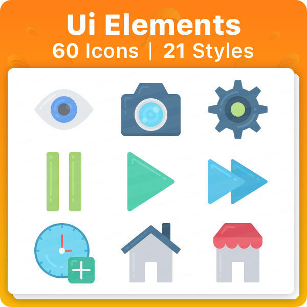 Icon set with 21 styles ( outline, blue wire, bright fill, broken outline, duotone, flat, gradient-filled, gradient-outline, gradient, grayscale, half-shadow, material, red-wire, sketchy, soft-fill, solid, blue-red, neon, pixelated, primary and yellow-wire )